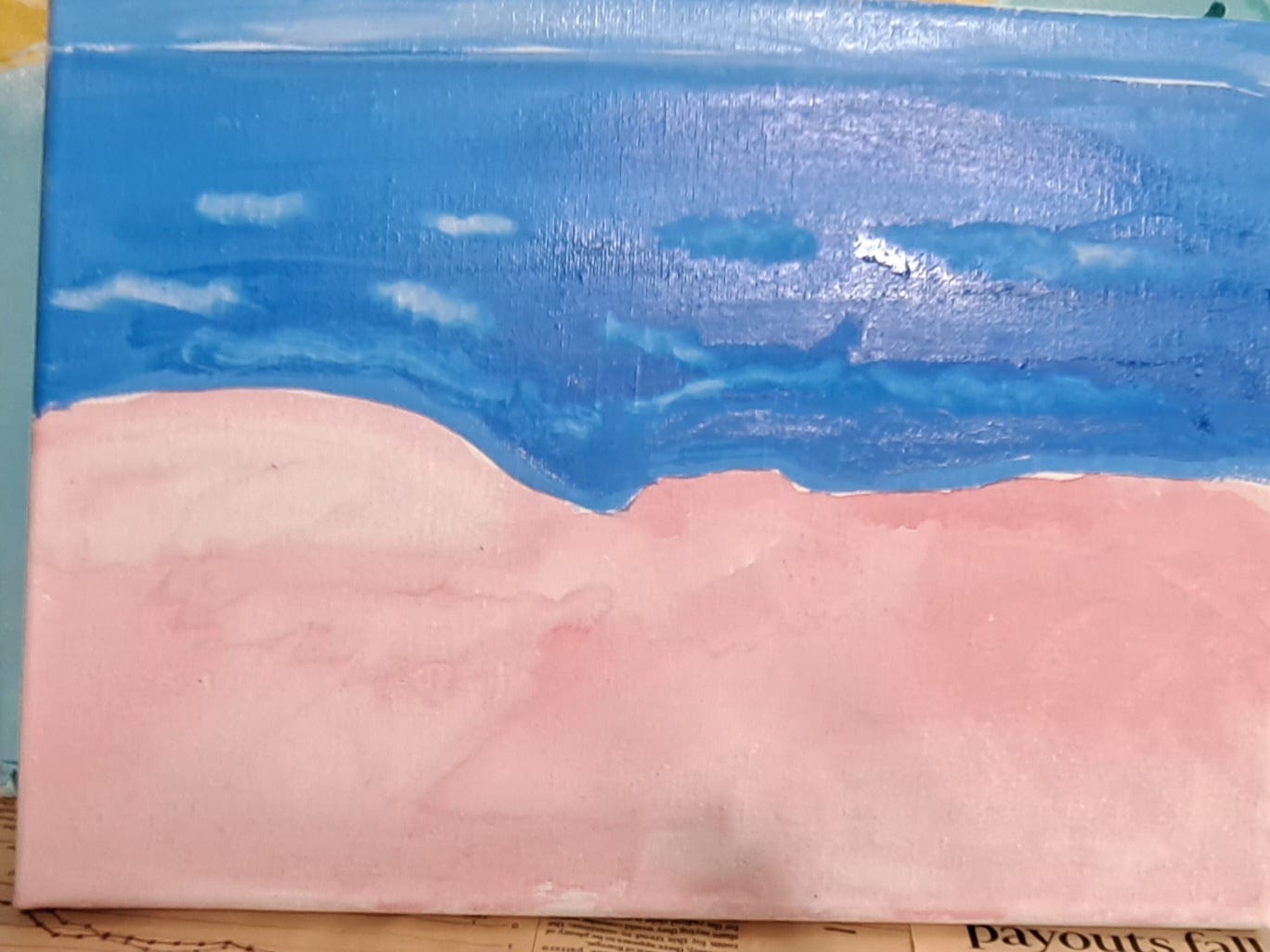 Then I created the colors on the canvas, wiping out with my finger in a cloth where I perceived the lighter colors would go: