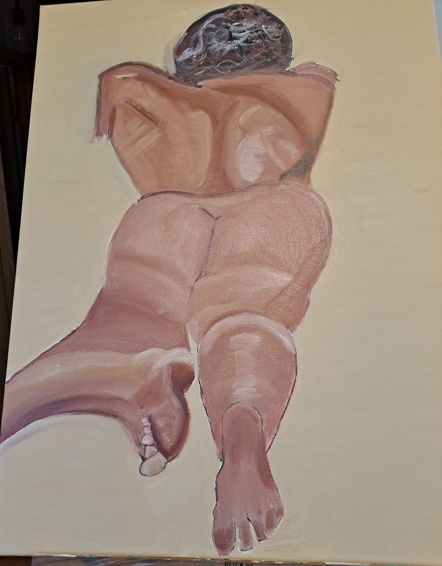 I often think about the things we tell ourselves. Sometimes we are overly negative. Other times, we are even-keeled or even positive. But if you were inside my head this week as I oil painted my latest nude draft, you’d have heard all types of voices going on at once.